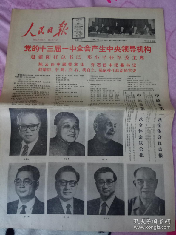 中國共產(chǎn)黨十三屆一中全會1987年11月2日在北京舉行。趙紫陽主持會議。全會選舉產(chǎn)生了新的中央領導機構及成員。