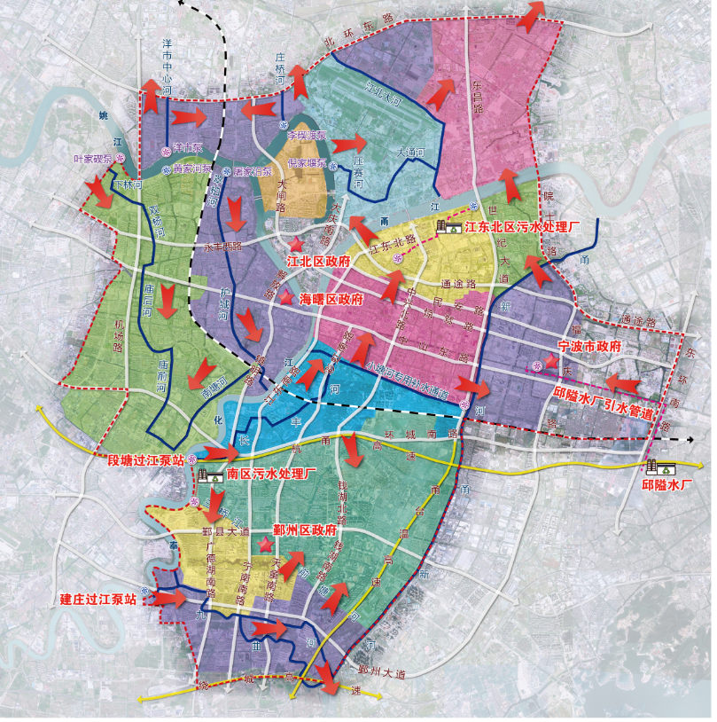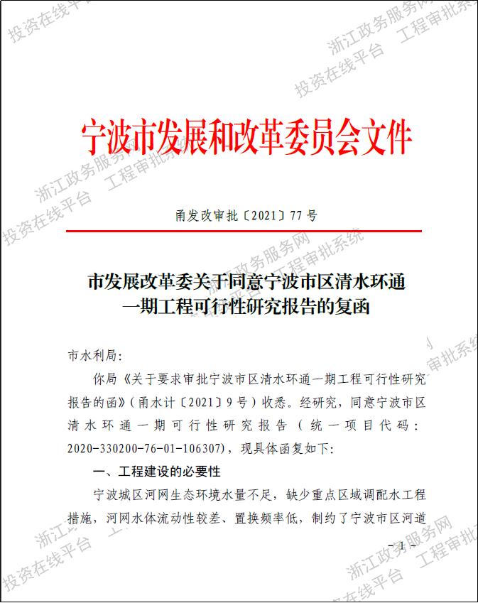 寧波市區(qū)清水環(huán)通一期工程西起機(jī)場高架、東至福慶路,北起北環(huán)高架,南至鄞州大道,面積合計(jì)約146km2,是寧波市區(qū)重要的河網(wǎng)引配水工程,亦是緩解老城內(nèi)澇壓力的有力舉措。為提升河網(wǎng)環(huán)境用水量、促進(jìn)水系互聯(lián)互通、改善水體流態(tài),寧波市區(qū)清水環(huán)通一期工程創(chuàng)新性的引入“精準(zhǔn)補(bǔ)水、高速水路”的計(jì)理念,切實(shí)解決了寧波城區(qū)現(xiàn)狀大水漫灌的河網(wǎng)調(diào)水模式下調(diào)水效率低下、補(bǔ)水針對性不強(qiáng)等痛點(diǎn)、難點(diǎn)問題。該工程可研報(bào)告于2021年5月獲寧波市發(fā)展和改革委員會(huì)批復(fù)。