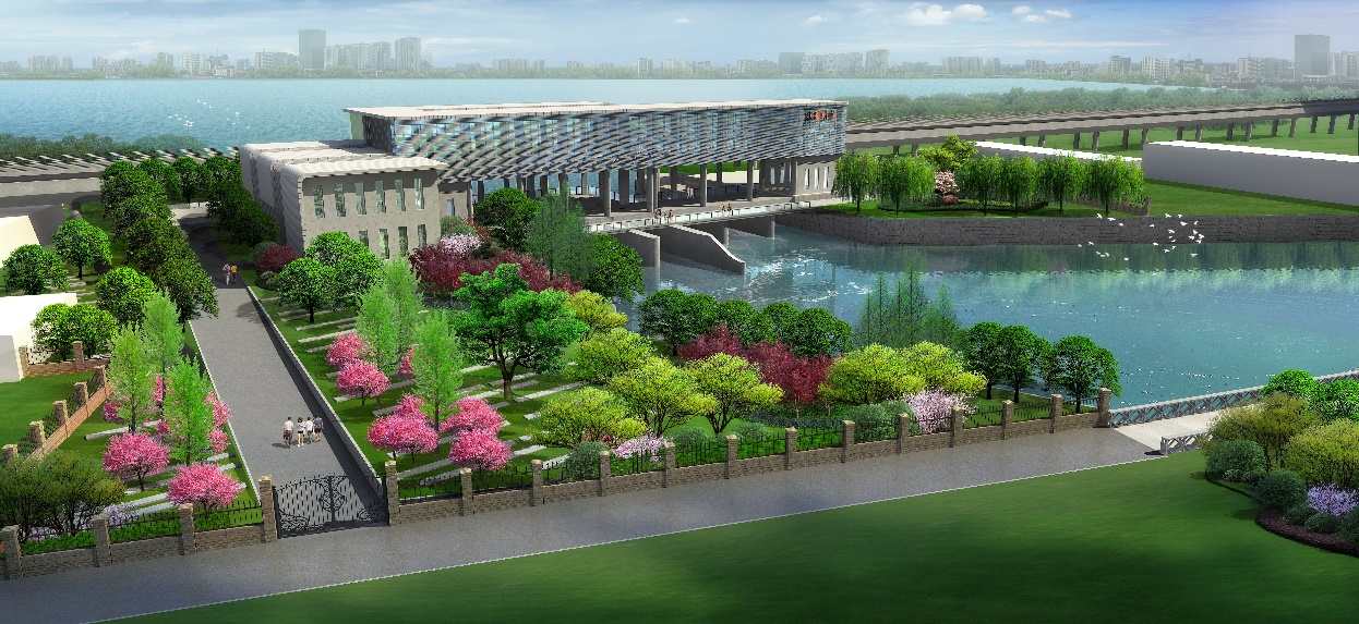 工程位于浙江省寧波市江北區(qū)甬江防潮堤沿線(xiàn),新建排澇閘一座,總凈寬21m,泵站一座,排澇流量40m³/s。工程建筑設(shè)計(jì)統(tǒng)一運(yùn)用混凝土、鋼、玻璃等材質(zhì),與河流、景觀(guān)巧妙結(jié)合,在體現(xiàn)水利設(shè)施特色的同時(shí),與城市景觀(guān)融為一體。