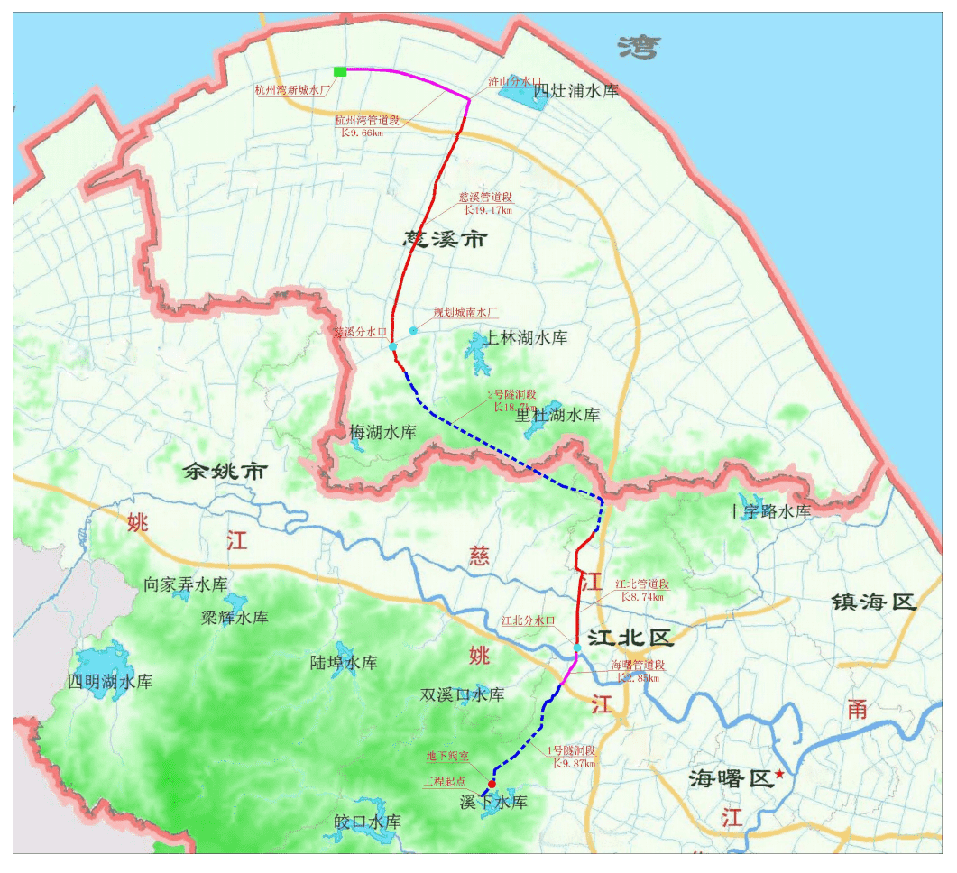 通過本工程的建設可實現(xiàn)寧波向慈溪市補充優(yōu)質(zhì)原水1500萬m3/a,向杭州灣新區(qū)補充優(yōu)質(zhì)原水2000萬m3/a,以減輕未來慈溪市和杭州灣新區(qū)優(yōu)質(zhì)水用水壓力,填補2020水平年的優(yōu)質(zhì)水需水缺口、補充2030水平年的部分優(yōu)質(zhì)水需水缺口。