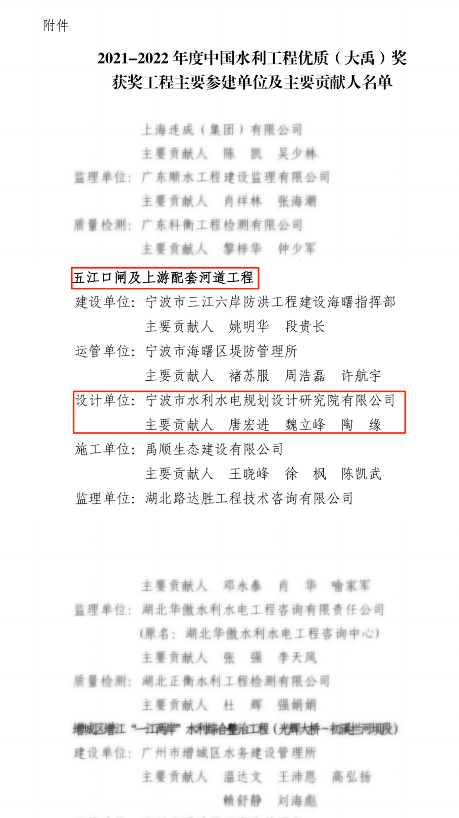 近日,2021年~2022年度中國水利工程優(yōu)質(zhì)(大禹)獎(jiǎng)獲獎(jiǎng)名單出爐,36個(gè)獲獎(jiǎng)工程中,我院成功鎖定一席!此次我院設(shè)計(jì)的五江口閘及上游配套河道工程,是我院個(gè)榮獲大禹獎(jiǎng)的項(xiàng)目。