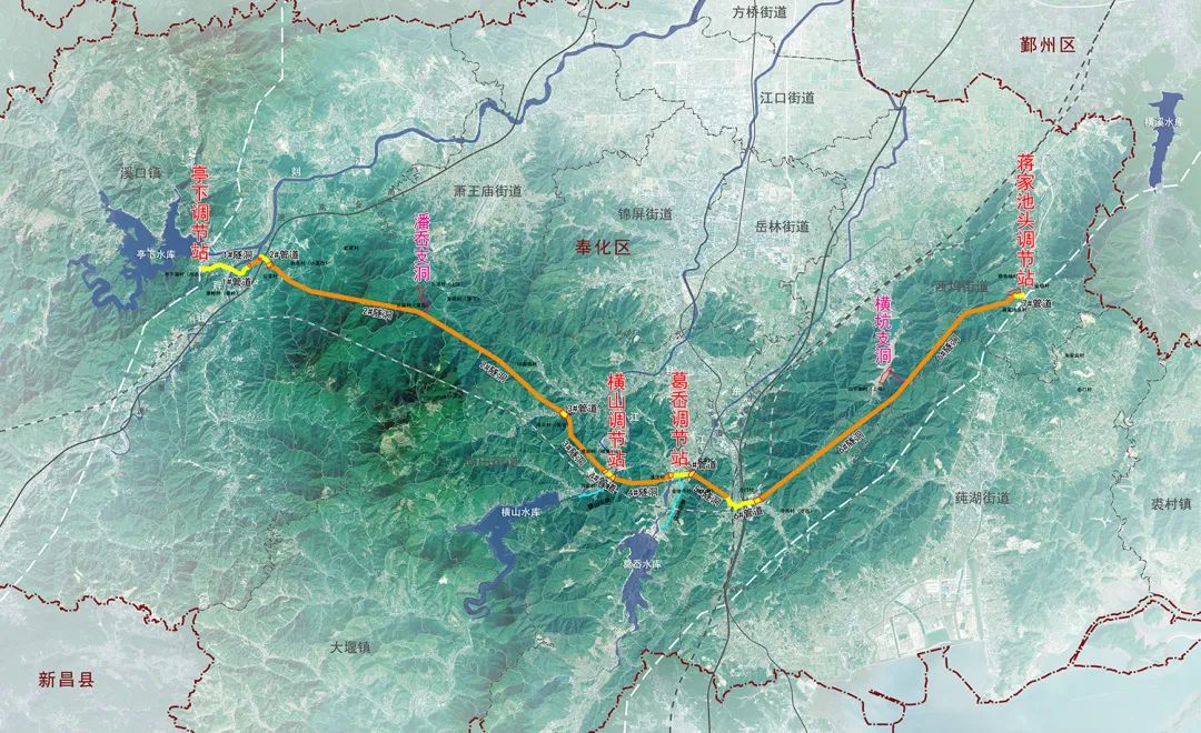 作為浙江省重點水利工程建設項目,寧波市水庫群東西線聯(lián)通工程位于寧波市奉化區(qū)南部山區(qū),工程設計輸水規(guī)模為40萬m3/d,項目投資約20億元。建設內(nèi)容包括一條干線、兩條支線,沿線調節(jié)站及各類閥井。全線總長約40.54km,其中干線長約36.76km,隧洞長度約31.09km,管道長度約5.67km,橫山支線長約1.45km,葛岙支線長約2.33km;新建4座調節(jié)站,分別為新建亭下調節(jié)站、橫山支線調節(jié)站、蔣家池頭調節(jié)站、葛岙支線調節(jié)站;新建各類檢修閥井若干。工程等別為Ⅲ等,工程規(guī)模為中型。主要建筑物如輸水隧洞、輸水管道及調節(jié)站等建筑物級別為 3 級。洪水重現(xiàn)期為 30 年一遇洪水設計,100 年一遇洪水校核。