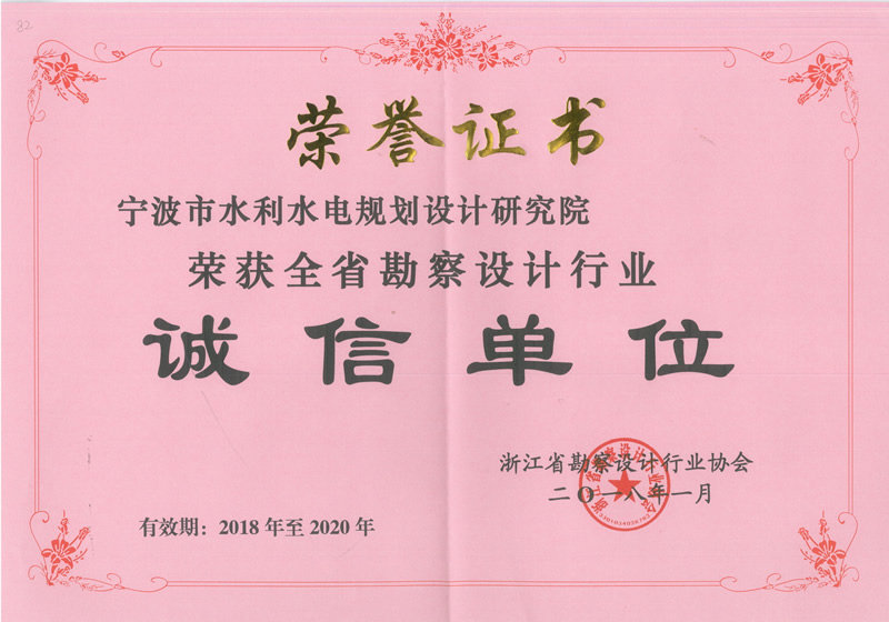 2018浙江省勘察設計行業(yè)誠信單位證書