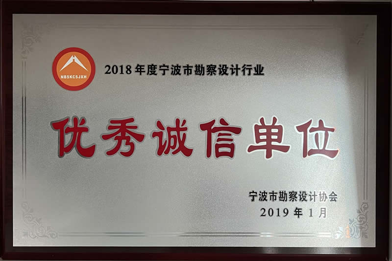 2018年度寧波市勘察市級行業(yè)優(yōu)秀誠信單位