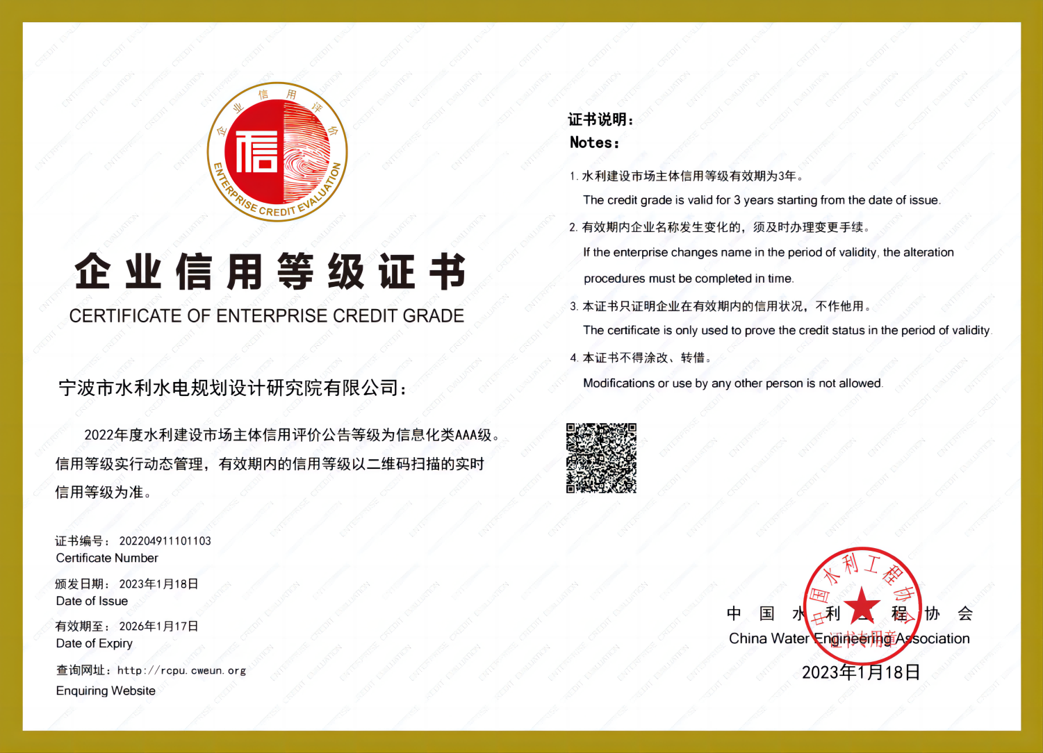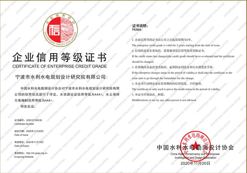 水利水電咨詢AAA級信用企業(yè)